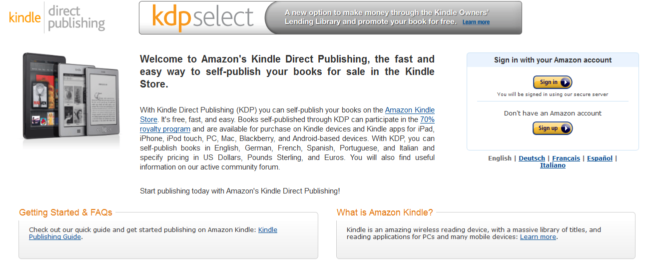 Recently, Amazon opened a new program called KDP Select. This program enables offers indie authors the possibility to include their ebooks in the Kindle Owners’ Lending Library. The Kindle Owners’ Lending Library enables Kindle owners who purchase an Amazon Prime membership or take up the offer of a one month free trial of Amazon Prime membership to download a limited number of books for free every month.