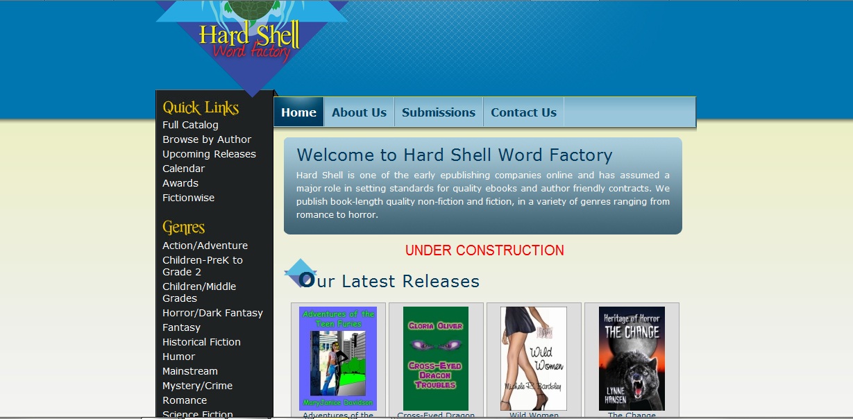 Hard Shell was one of the earliest electronic publishing companies online and assumed a major role in setting standards for quality electronic books and author friendly contracts. Many Hard Shell books have won or placed in writing contests and readers choice awards. Hard Shell authors have bee shortlisted or won over 73 EPPIE Awards, 24 Dream Realm Awards, 10 Quasar Awards for Cover Art, and 8 Independent eBook Awards. Hard Shell itself was given an Independent eBook Award for Best Electronic Publisher.