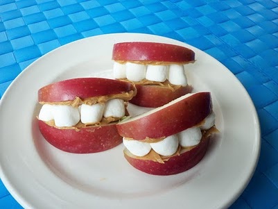 Tasty smiles, made of apple, peanut butter and marshmallows.