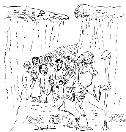 “Because over there, on the other side,” replies Moses, “we’ll find a land overflowing with milk and honey. In any case, you must cross because I’ve just paid for a full page in the Bible.”