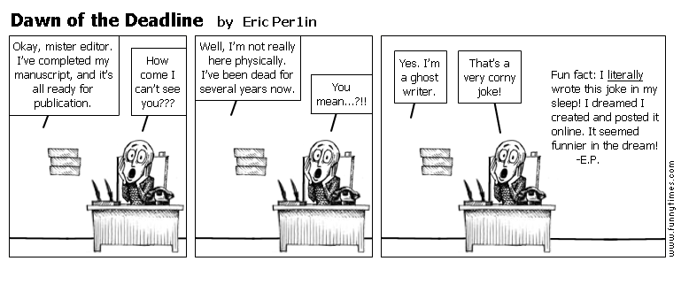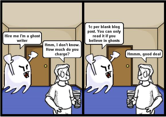Humor for Writers – Dawn of the Dealine Now let’s have a look at what a ghostwriter looks like when handling business transaction …