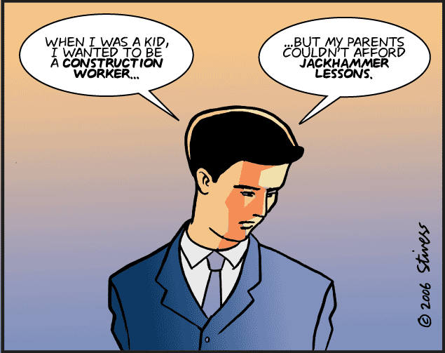 One day, John and his wife Caroline are walking past a construction site. Suddenly, one of the construction workers stops and calls out